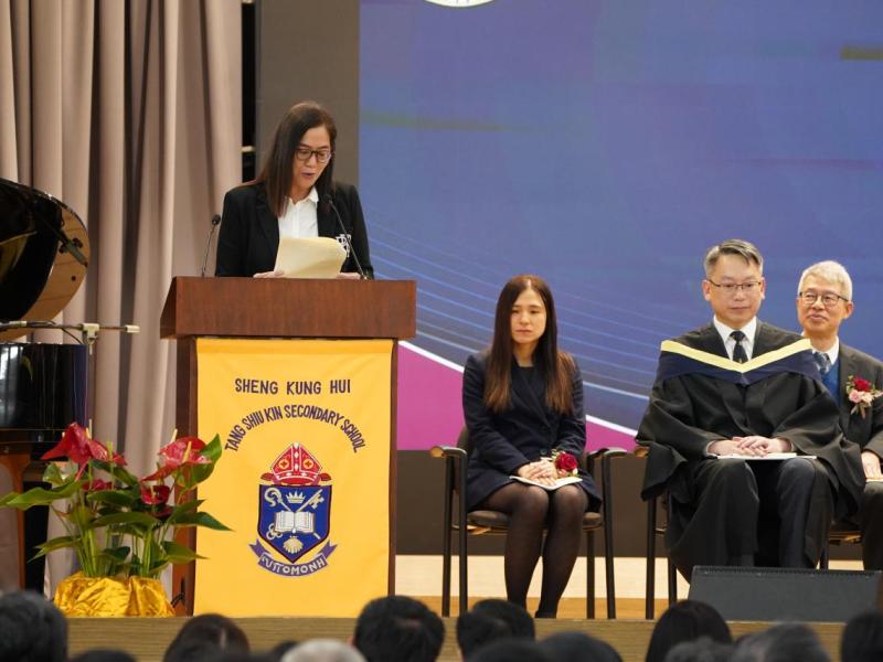 The ceremony commenced with an opening prayer led by Prof. Allan YUEN, followed by a welcome address by our School Supervisor, the Revd. Christine HO. The principal's detailed annual report celebrated the school's accomplishments and gave recognition to the joint effort of both students and staff.